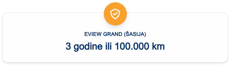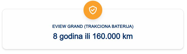 Eview Grand donosi impozantniji i smeliji dizajn, kreiran za one koji traže prostrano i luksuzno vozilo bez kompromisa po pitanju performansi. Njegova robustna, ali elegantna silueta ističe snažan karakter, dok aerodinamične linije poboljšavaju efikasnost i stabilnost pri vožnji. Prednja maska sa hromiranim detaljima, uz LED svetlosni potpis, doprinosi sofisticiranom i prepoznatljivom izgledu. Veliki aluminijumski točkovi ne samo da povećavaju vizuelni utisak, već i poboljšavaju upravljivost i udobnost vožnje. Praktični detalji poput električno podesivih retrovizora, krovnih nosača i automatskog otvaranja gepeka dodatno doprinose funkcionalnosti, dok bogata paleta boja omogućava da vozilo prilagodite svom stilu.